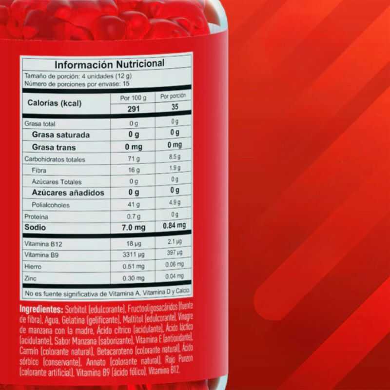 • El vinagre de manzana es conocido por sus posibles beneficios para la salud, como el apoyo a la digestión, la regulación de los niveles de azúcar en sangre y la pérdida de peso. Nuestras gomitas de vinagre de manzana ofrecen una forma más agradable y fácil de consumir vinagre de manzana, sin el sabor fuerte del líquido, además tiene ingredientes que potencializan los resultados como la fibra prebiotica y vitaminas.